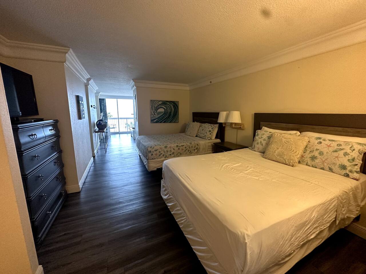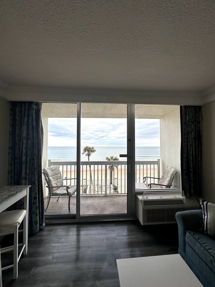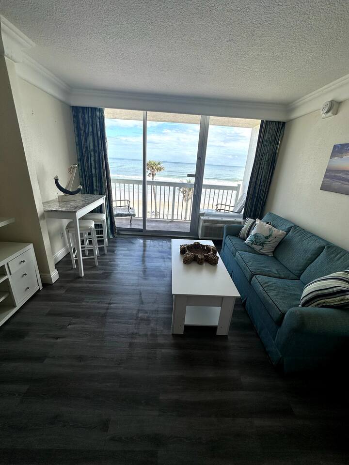 2 Queen Beds and a Queen Pullout with kitchenette, DIRECT OCEAN FRONT unit. The property has no amenities open, so the price reflects that. Looking for great guests who want an affordable vacation with Beach Access from the building who will take care of property! This is perfect for a family! Shopping across the way with a Publix for easy convenient meals. PRIVATE BALCONY TO ENJOY COFFEE/COCKTAILS ON. Perfect property to spend day at the beach or other Daytona offerings.