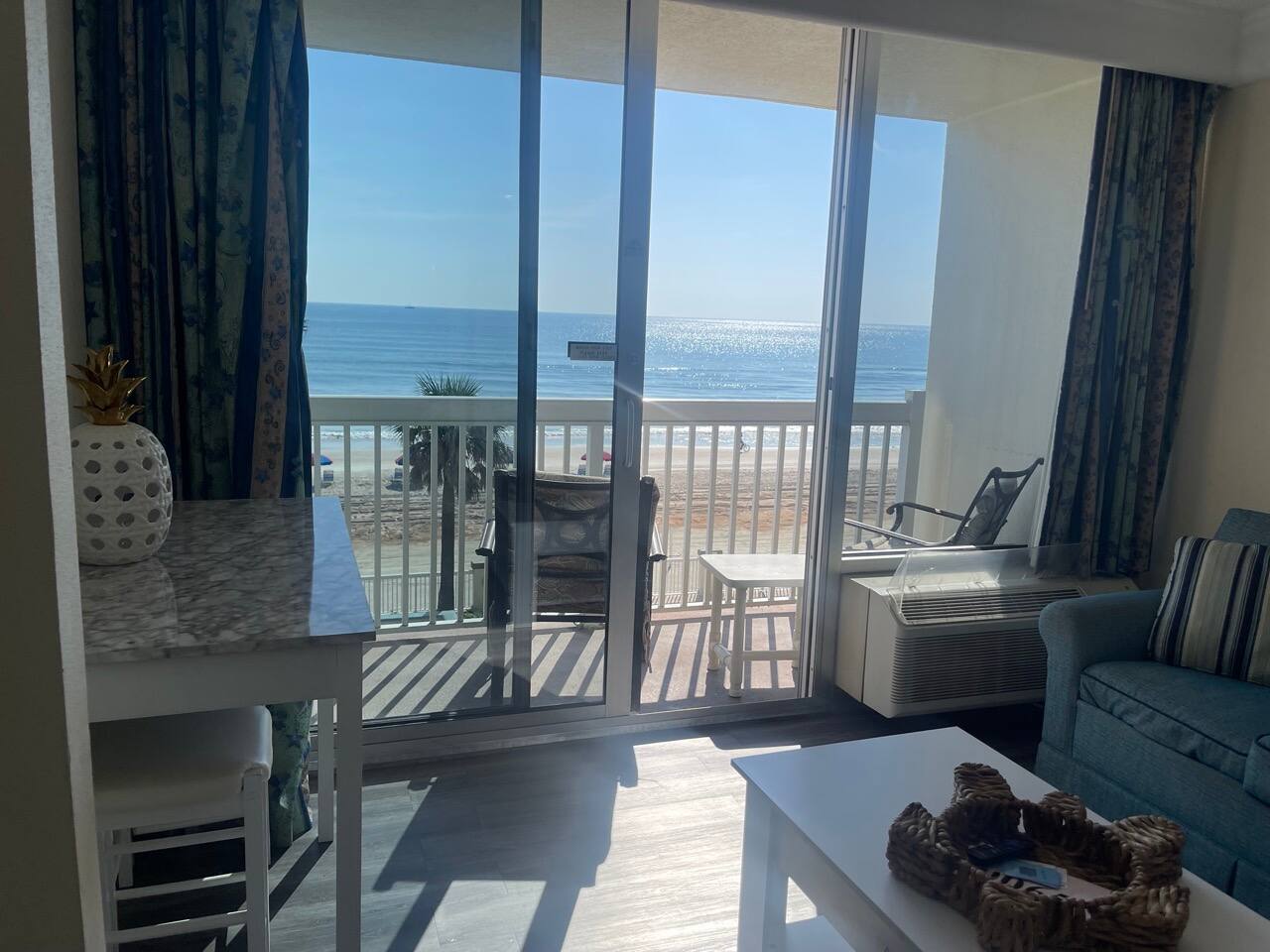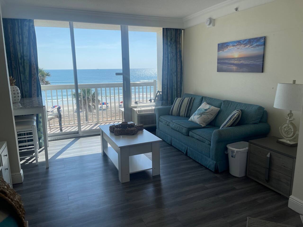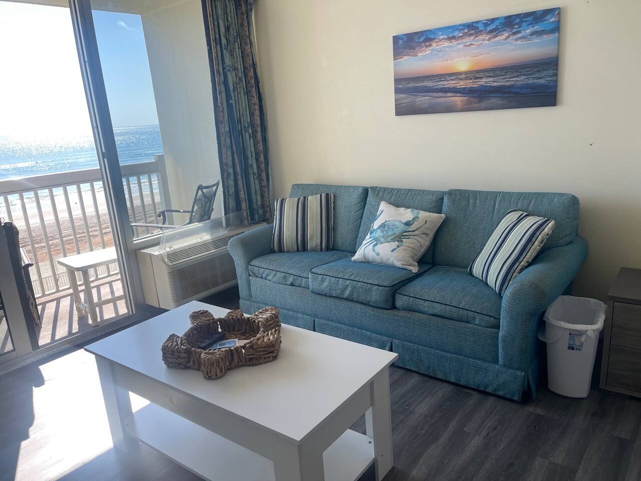 You won't want to miss this direct ocean front vacation spot. Has 2 queen beds and a queen pullout. Sleep with the beach in the background while you spend your days on the beach. Beach Access on side of building. Unit comes with lots of beach toys. Kitchenette so you can save money on food, and really enjoy your space. Take a family vacation and live your best #BeachOn life. Building pools are not open. :( But with the ocean just steps from you, you will have a blast. Shopping across street.