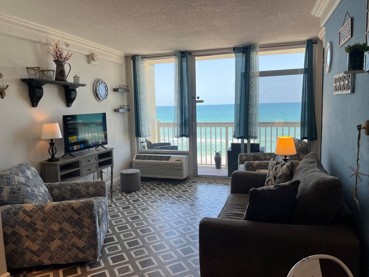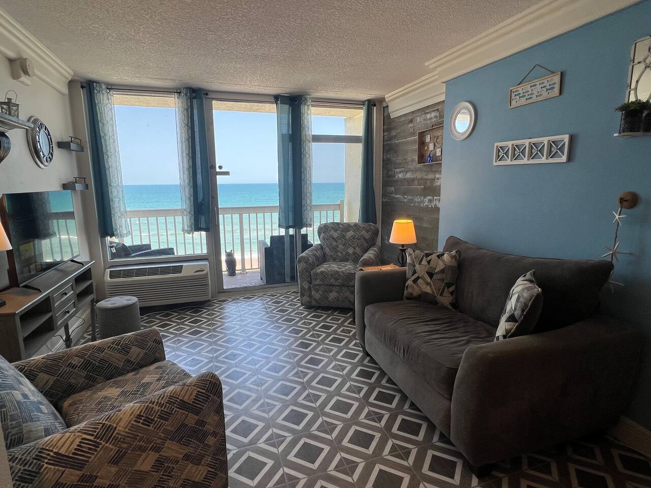 Private Direct Ocean Front Balcony! Ocean front condo! Hurricane damage is still very visible from this unit, so pricing reflects this and no amenities, but direct beach access is available! CONFIRM PRICING with host prior to booking if you like (software seems to jump prices a little?) Pricing is reflective of no pool or amenities. Looking for guests to appreciate unit and location while getting a reduced rate while taking care of unit! Sleeps up to 6 - we do allow 4 guests and charge for he extra 2 as the price is so competitive! Parking is available in South vacant lot right next to building (South), please review map in pictures of parking area. NO TRAILERS in South Lot. Parking Pass required and in room! $50 replacement cost which is the cost from Daytona Beach Resort & Conference Center. Unit has what you need for a kitchenette and stay, induction stove top, plug-in mini convection oven. Looking for good guests to appreciate reduced price while maintaining unit and having a fun vacation. This is a great condo and you will love watching the pelicans fly by and marine life from the balcony as you have your coffee or cocktail on the private balcony. Concierge Book in room. Ladies: Please use the black makeup towels and not the white wash cloths for Makeup! This helps keeps costs down! Drivable beach! Direct beach access from side of building. Private Direct Ocean Front Balcony. Proper 1-bedroom unit. Most units at DBR are studio. This is a large unit. NO amenities open at DBR at this time. McDonalds and other sit down restaurants blocks away. 2-miles to pier and other major locations/attractions like Daytona Lagoon. Just turn South on A1A...Easy to get to Speedway and other highly sought out places. BELLAIR PLAZA (across the street): Publix, Marshalls, Bealls Outlet, Pet Supermarket, Dollar Tree, Five Below, AutoZone Ross Dress for Less. UPS Store Walgreens Nail Bar FOOD ARIA PIZZA SUBWAY KNIGHT CRAB MIYABI SUSHI BIG TUNA BAR AND GRILL CHINA-1 Curly Ice Cream